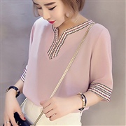 花邊短袖套頭雪紡衫 [上衣] #1-天藍色 #2-...