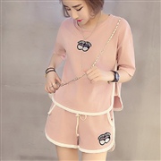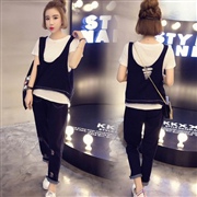 割破上衣長褲三件套圓領短袖休閒套裝 [套裝]