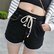 彈性鬆緊腰抽繩純色高腰短褲 [短褲]