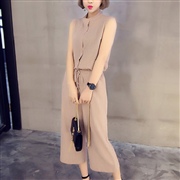 排扣無袖雪紡九分闊腿褲套裝 [套裝] #1-藕粉色...