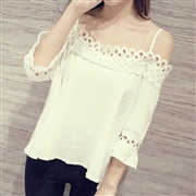 顯瘦七分袖蕾絲一字領上衣 [上衣]