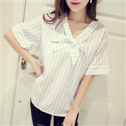 蝴蝶結上衣條紋短袖上衣 [上衣]