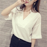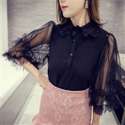 網紗五分袖領襯衫 [上衣] #1-白色 #2-黑色...