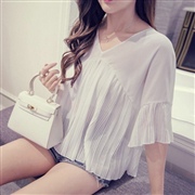 百褶荷葉袖上衣 [上衣] #1-白色 #2-黑色