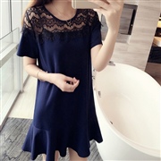 鏤空荷葉邊擺連身裙 [連身裙] #1-黑色 #2-...