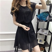 純色顯瘦荷葉袖連身裙 [連身裙]