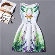 復古印提花無袖蓬蓬連身裙 [連身裙]
