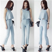 簡約無袖上衣+高腰開叉微喇叭褲套裝 [套裝]