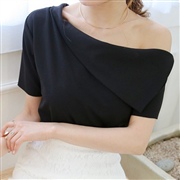 露肩純色短袖上衣 [上衣] #1-白色 #2-黑色