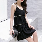 性感重工鏈條掛脖吊帶背心百褶連身裙 [連身裙]