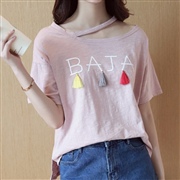 字母流蘇裝飾質上衣 [上衣] [TEE] #1-白...
