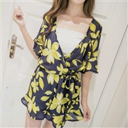 收腰顯瘦雪紡短袖連體短褲 [連身褲] #1-白色 ...
