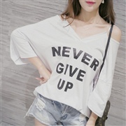 字母印花上衣露肩短袖上衣 [上衣] #1-白色 #...