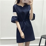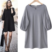 燈籠袖顯瘦連身裙 [連身裙] #1-白色 #2-灰...