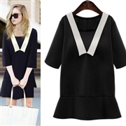 拼色短袖修身連身裙 [連身裙] #1-黑色 #2-...