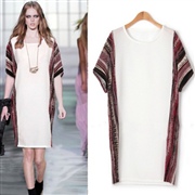 顯瘦壓折拼接蝙蝠袖連身裙 [連身裙] #1-白色 ...
