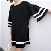 寬鬆條紋綁帶連身裙 [連身裙] #1-寶藍色 #2...