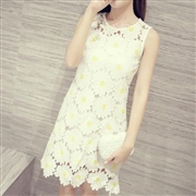性感顯瘦修身蕾絲花朵無袖連身裙 [連身裙]