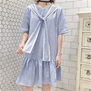 寬鬆條紋綁帶連身裙 [連身裙] #1-寶藍色 #2...