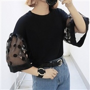 簡約拼接波點袖寬鬆上衣 [上衣] #1-白色 #2...