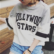 圓領七分袖拼接撞色字母印花上衣 [上衣] [TEE...