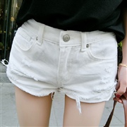 破洞牛仔短褲 顯瘦熱褲 [短褲] #1-白色 #2...
