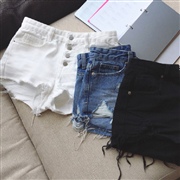 純色破洞撕毛邊牛仔短褲修身顯瘦熱褲 [短褲]