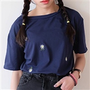 刺繡小雛菊短袖上衣 [上衣] #1-白色 #2-藍...