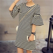 條紋連衣短裙圓領荷葉袖連身裙 [連身裙]