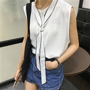 寬鬆飄帶無袖純色襯衫 [上衣] #1-白色 #2-...