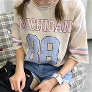 做舊字母印花圓領短袖上衣 [上衣] [TEE] #...