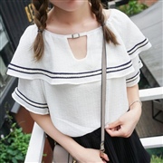輕薄雪紡百搭搭領短袖上衣 [上衣] #1-白色 #...