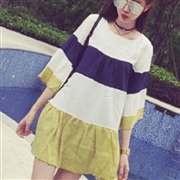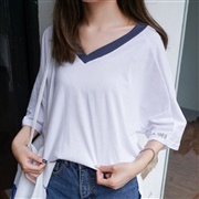 拼色純色短袖上衣 [上衣] [TEE] #1-白色...