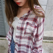 紗寬鬆格子襯衫 [上衣] [襯衫] #1-紅色 #...