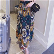 開叉復古花紋雪紡裙半身裙 [半身裙]
