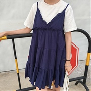 皺褶純色吊帶背心連身裙 [連身裙] #1-白色 #...