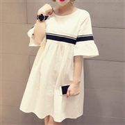 喇叭袖拼接連身裙 [連身裙] #1-白色 #2-黃...