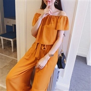一字領上衣綁帶闊腿褲套裝 [套裝] #1-深卡綠 ...