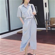百褶高腰方領吊帶背心背心裙藍白格子連身裙 [連身裙...