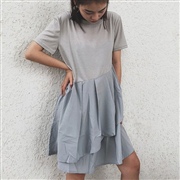 極簡圓環吊帶背心假兩件連身裙 [連身裙]