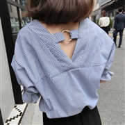 豎條襯衫露背寬鬆藍色上衣 [上衣]