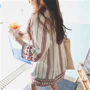 民族刺繡元素綁帶寬鬆襯衫上衣 [上衣] [襯衫]
