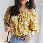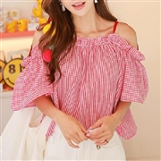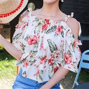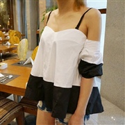 木耳邊一字領吊帶背心涼顯瘦花色短上衣 [上衣]