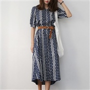 復古民族圖案泡泡袖長款連身裙 [連身裙]