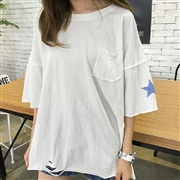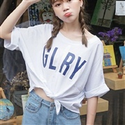 破洞字母印花短袖上衣 [上衣] #1-白色 #2-...