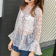 雪紡喇叭袖碎花輕薄防嗮衫 [上衣] #1-白色 #...