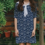 雪紡連身裙顯瘦短袖寬鬆碎花裙 [連身裙]