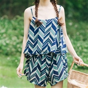 雪紡吊帶背心背心 高腰寬鬆短褲套裝 [套裝] #1...