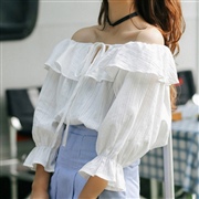 一字肩蝴蝶結綁帶襯衫 [上衣]