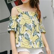 香蕉印花露肩可拆卸袖子兩穿吊帶背心襯衫 [上衣]